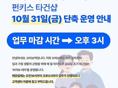 브라보텍 고객지원센터/펀키스 타건카페 10월 31일(금) 단축 운영 안내