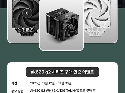 브라보텍에서 고성능 듀얼 타워 쿨러의 기준을 새롭게 정의하며 시장에서 꾸준한 사랑을 받아온 DEEPCOOL AK620 시리즈의 후속 세대, DEEPCOOL AK620 G2 시리즈를…