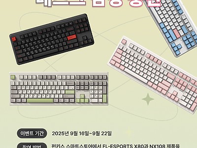 안녕하세요 브라보텍의 프리미엄 키보드/마우스 및 액세서리 브랜드 펀키스입니다. 2025년 9월 9일부터 15일까지 진행했던 펀키스, FL-ESPORTS 9월 이벤트 Geo 시리즈 …