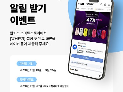 안녕하세요 브라보텍의 프리미엄 키보드/마우스 및 액세서리 브랜드 펀키스입니다. 2026년 3월 19일부터 25일까지 진행했던 펀키스 스토어 알림 받고 잠자리 마우스 받자! 이벤트…
