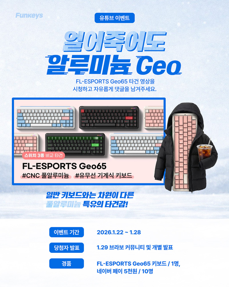 펀키스 유튜브 얼죽알 키보드 Geo65 타건 영상 댓글 이벤트 안내