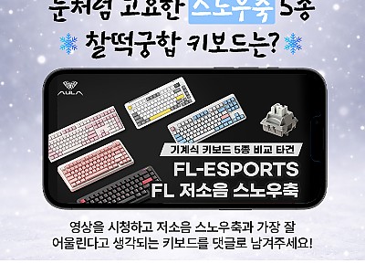 안녕하세요 브라보텍의 프리미엄 키보드/마우스 및 액세서리 브랜드 펀키스에서 펀키스 유튜브 「눈처럼 고요한 타건감 FL-ESPORTS 저소음 스노우축 스위치 탑재 5종 기계식 키보…