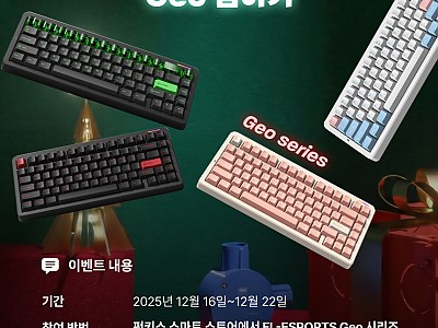 안녕하세요. 브라보텍의 프리미엄 키보드/마우스 및 액세서리 브랜드 펀키스입니다.2025년 12월 16일부터 22일까지 진행했던 펀키스, FL-ESPORTS 12월 이벤트 Geo 시…