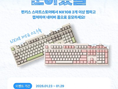 펀키스, FL-ESPORTS 1월 이벤트 안내드립니다.2026년 1월 23일부터 29일까지 펀키스, FL-ESPORTS 1월 이벤트 ‘NX108 저소음 스노우축, 키보드에도 눈이 …