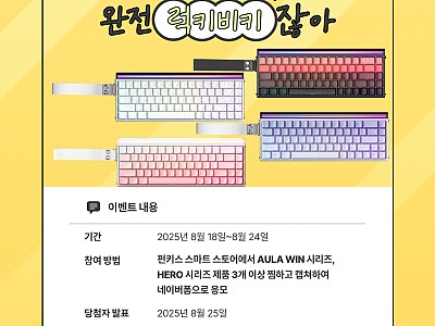 안녕하세요 브라보텍의 프리미엄 키보드/마우스 및 액세서리 브랜드 펀키스입니다. 2025년 8월 11일부터 17일까지 진행했던 AULA x 브라보 커뮤니티 8월 이벤트 AULA 독거…