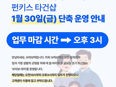 브라보텍 고객지원센터/펀키스 타건카페 1월 30일(금) 단축 운영 안내