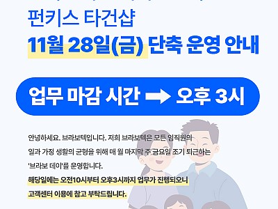 브라보텍 고객지원센터/펀키스 타건카페 11월 28일(금) 단축 운영 안내