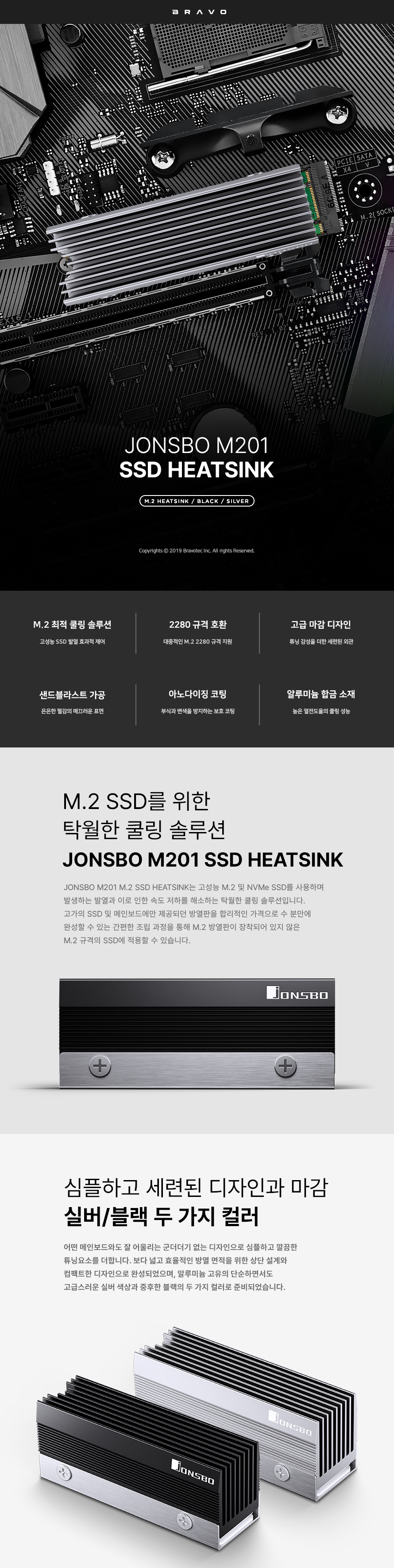 브라보텍, 알루미늄 합금 M.2 SSD 히트싱크 JONSBO M201·M202 출시