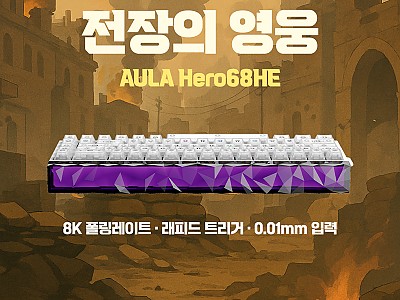안녕하세요. 브라보텍의 프리미엄 키보드/마우스 및 액세서리 브랜드 펀키스입니다.전장의 흐름을 바꾸는 단 한 발! 그 중심에는 AULA Hero68HE가 있습니다.AULA Her…