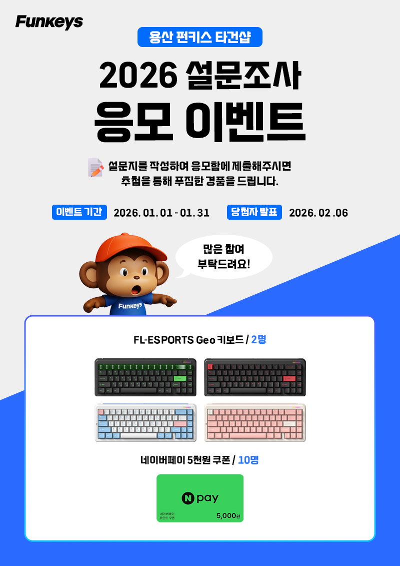 [당첨자 발표] 2026 용산 펀키스 타건샵 설문조사 응모 이벤트