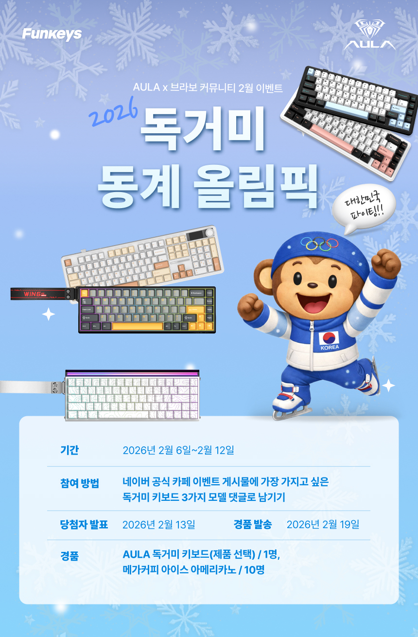 2026년 2월 6일부터 2월 12일까지 AULA x 브라보 커뮤니티 2월 이벤트 ‘2026 독거미 동계 올림픽’ 이 진행됩니다.