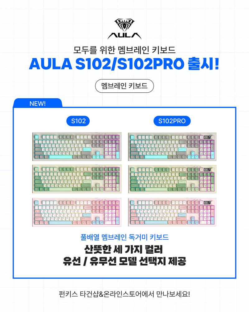 [펀키스, AULA 독거미 풀배열 유무선 멤브레인 키보드 S102 / S102Pro 신규 출시]