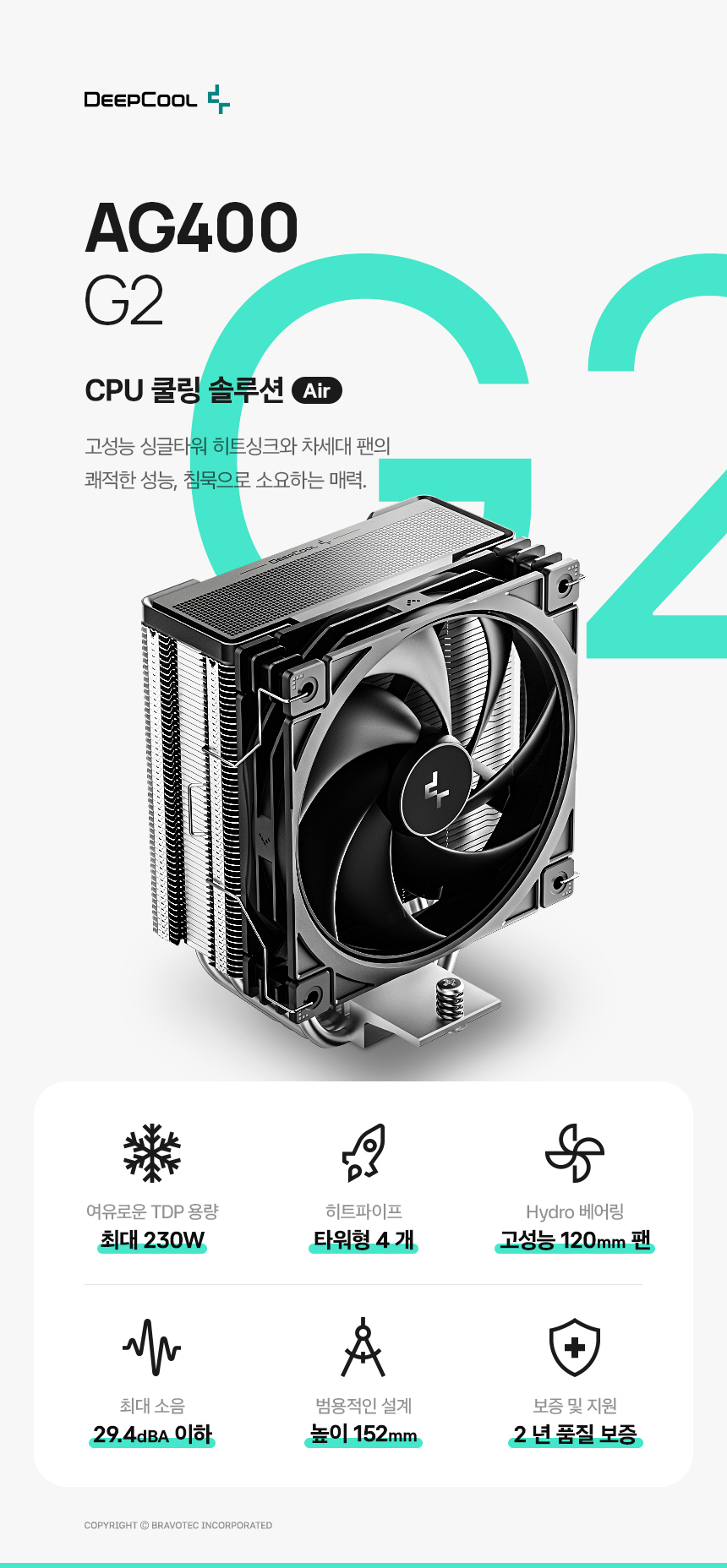 [출시예정] 브라보텍, 한층 더 진화한 국민 쿨러의 완성도, DEEPCOOL AG400 G2 출시 예정