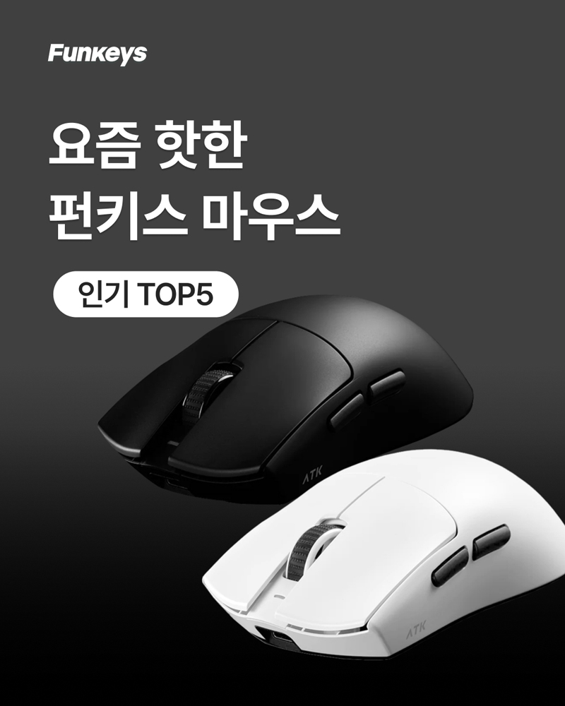 가성비 중심의 데일리 마우스부터, 대회급 퍼포먼스를 지향하는 플래그십 모델까지. 펀키스 인기 TOP 5는 각각의 사용 목적에 맞게 명확한 방향성을 가지고 있습니다.