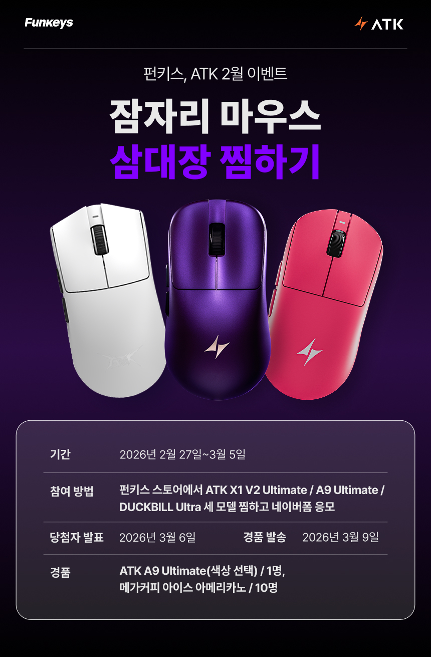 [당첨자 발표] 펀키스, ATK 2월 이벤트 ‘잠자리 마우스 삼대장 찜하기’