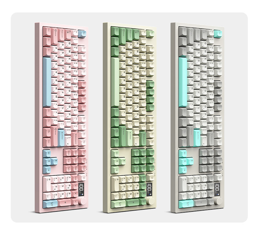 S102와 S102Pro는 풀배열 레이아웃을 기반으로 설계되었습니다. 덕분에 기존 키보드에서 별도의 적응 없이 바로 사용할 수 있는 것이 특징입니다. 숫자 키패드가 포함된 구성은 업무 환경에서는 계산이나 문서 작업에 편리하고 게임 환경에서도 다양한 단축키 활용이 가능합니다. 또한 데스크 분위기를 살려주는 핑크, 그린, 그레이 세 가지 컬러로 구성되어 있어 심플한 사무실 책상부터 감성적인 데스크테리어까지 자연스럽게 어울립니다.