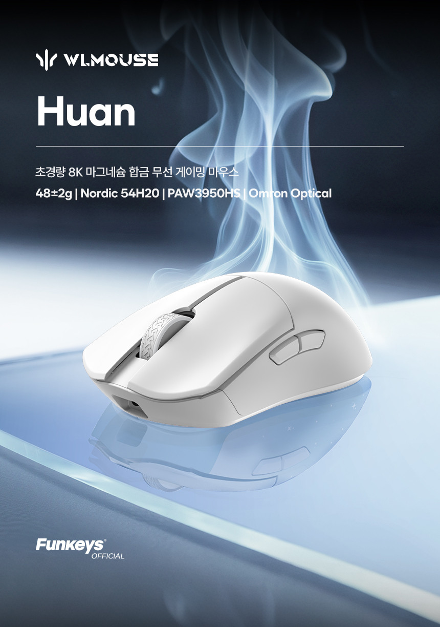 ▶ 높은 완성도와 놀라울 정도로 가벼운 무게로 국내외 게이밍 유저들에게 호평받고 있는 마우스 브랜드 WLMouse의 새로운 모델, Huan 시리즈가 펀키스를 통해 국내 정식 발매될 예정입니다.