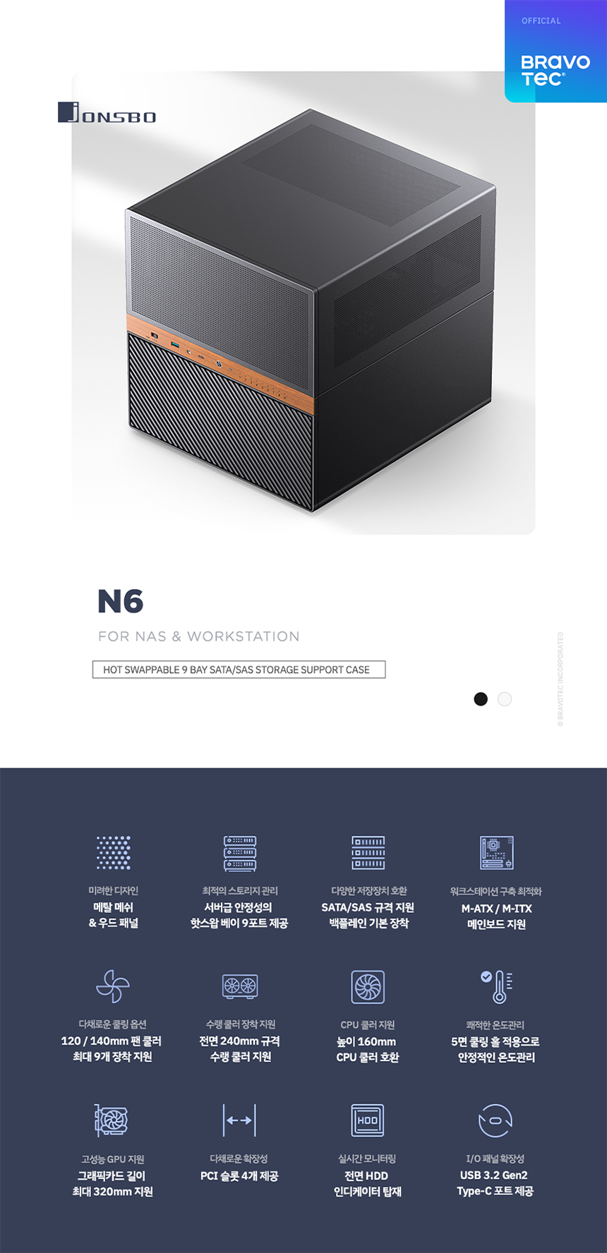 브라보텍에서 뛰어난 확장성과 효율적인 공간 설계를 갖춘 NAS 케이스 JONSBO N6 모델을 새롭게 선보일 예정입니다.