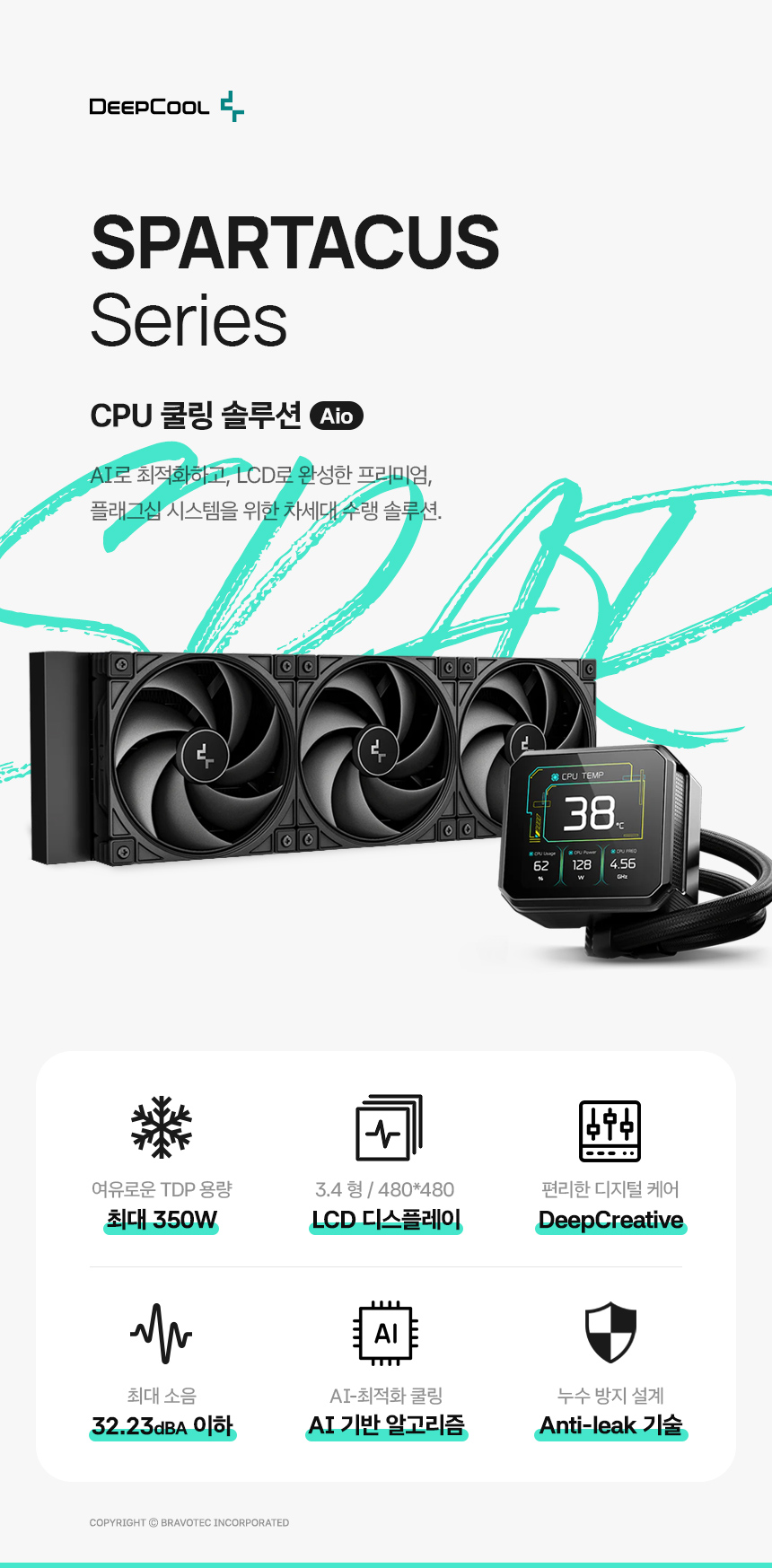 브라보텍에서 DeepCool의 최상위 기술력이 집약된 플래그십 일체형 수랭 쿨러, DEEPCOOL SPARTACUS 시리즈(360/420)를 새롭게 선보일 예정입니다.