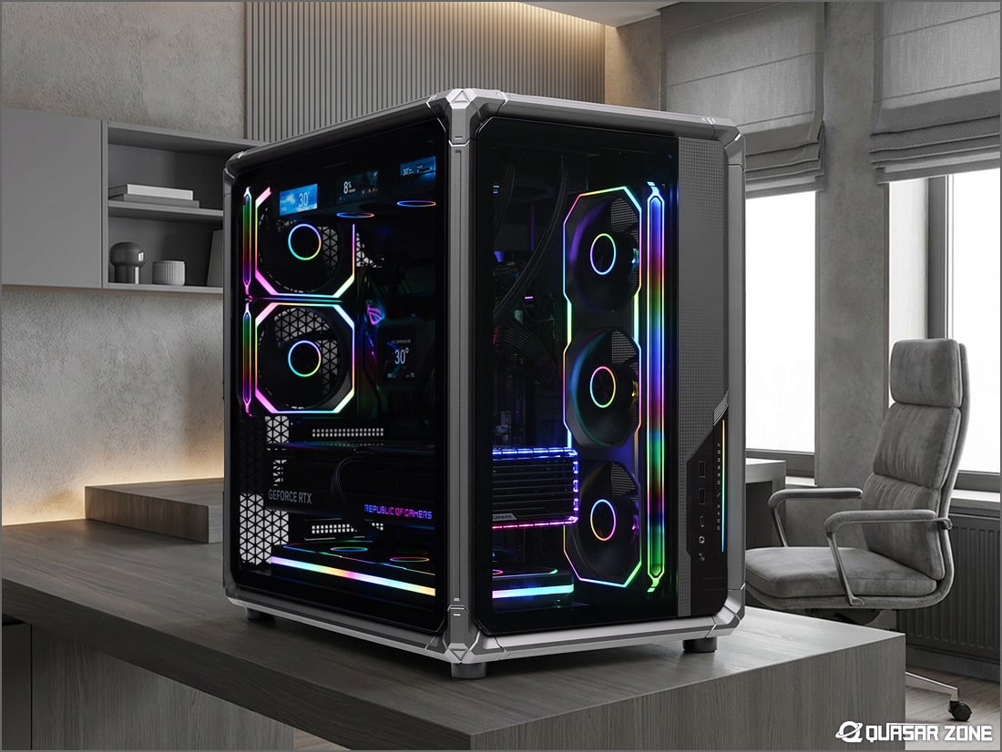 ABS 엔지니어링 플라스틱 프레임과 패널에 2H 경도의 금속 질감 표면 코팅을 적용하여 입체적인 디자인과 높은 완성도의 외관을 구현했습니다. 좌·우 분리형 듀얼 챔버 구조와 전면·측면 듀얼 강화유리 패널 설계를 통해 효율적인 시스템 구성이 가능하며 내부 하드웨어와 튜닝 요소를 다양한 각도에서 명확하게 볼 수 있는 JONSBO X400 BTF의 자세한 내용은 퀘이사존 리뷰를 통해 확인해 보시기 바랍니다.